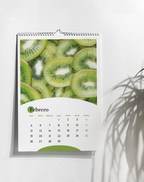 Puedes elegir entre dos tamaños, dependiendo de tus necesidades y del espacio que tengas disponible. El calendario contiene una espiral para pasar fácilmente las páginas y además contiene la anilla para colgarlo en la pared.