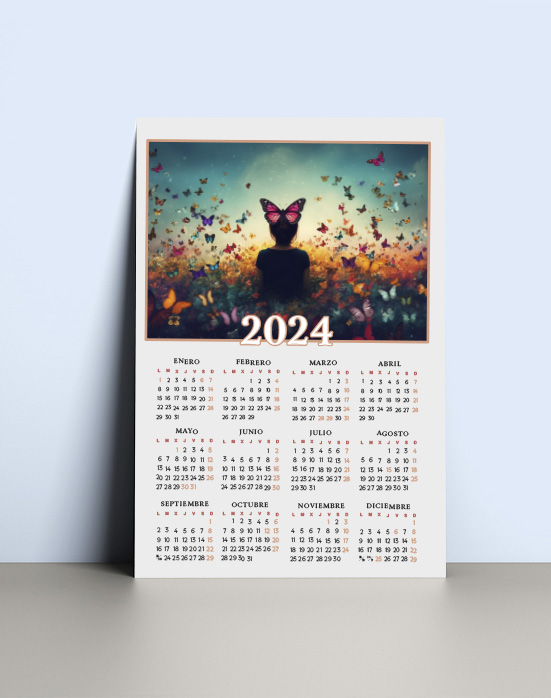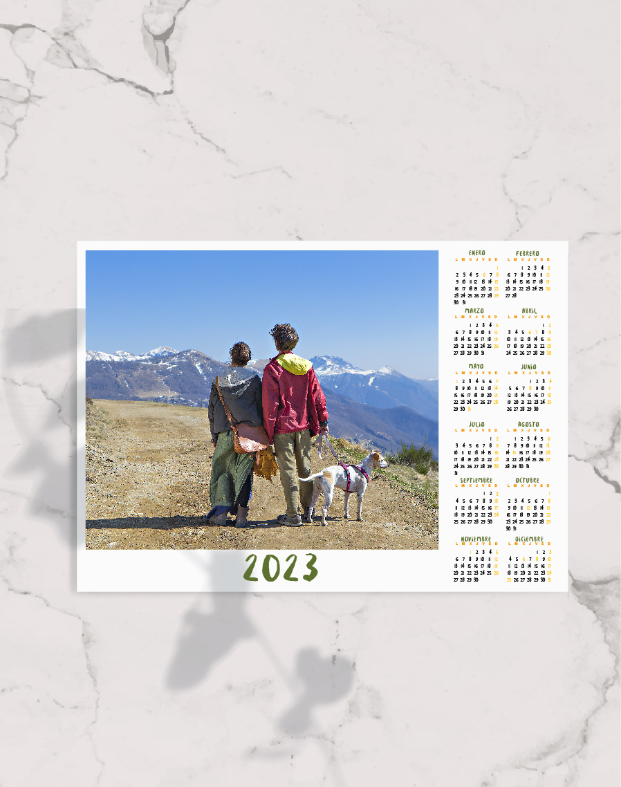 Calendario anual personalizado. Elige una foto, un texto o un logotipo y personaliza este calendario. Perfecto en épocas navideñas o como artículo publicitario.