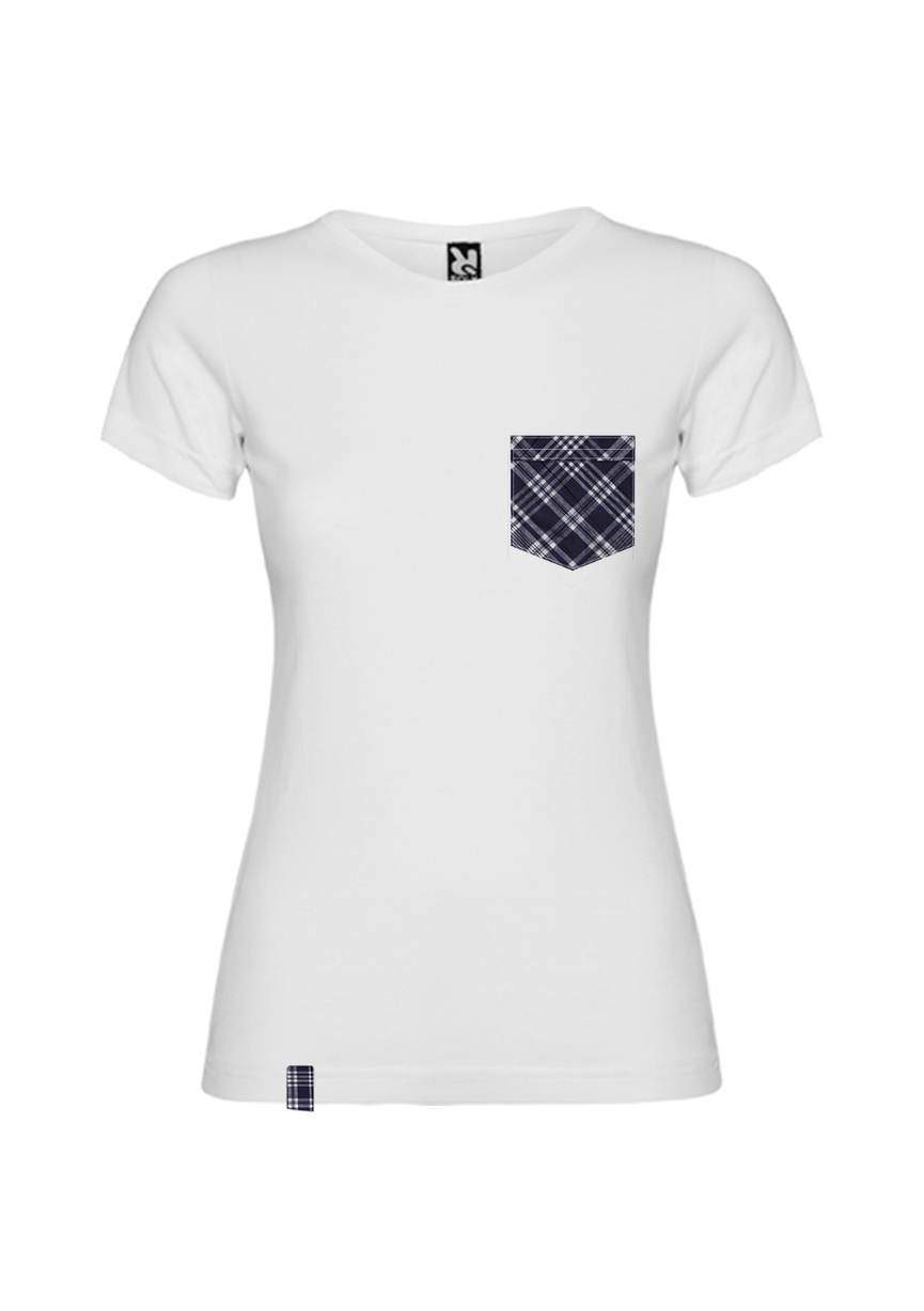 Camiseta Pañuelo Hierbas Mujer es una camiseta con bolsillo de pañuelo hierbas pandorga. Hemos creado un novedoso diseño en el que incluimos la camiseta blanca con un bolsillo cosido con el tradicional pañuelo de hierbas como manda la tradición. Además incluye una trabilla en la parte inferior con la misma estética. Pensada especialmente para fiestas tradicionales para peñas o asociaciones. Luce tu camiseta en las fiestas tradicionales. ¿Sois una peña? Pues tenemos descuento por cantidades!