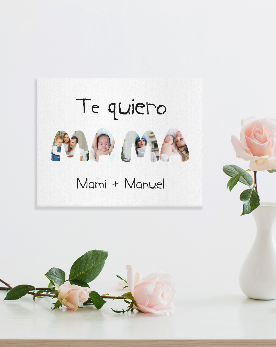 Día de la madre MAMÁ es un diseño original y pensado para sorprender a mamá en su día. Lo mejor de este sencillo diseño es que puedes personalizarlo con la foto que tu elijas. Te recomendamos que elijas una en la que salga mamá con sus hijos, ¡seguro que le encanta!