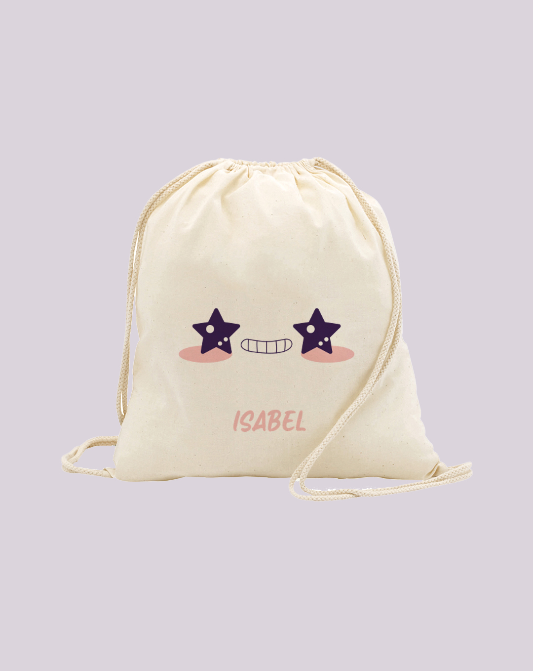 Mochila ojitos personalizada. Este bolso está fabricado 100% de algodón y acabado en color natural. Es perfecto para regalar el día de la madre, en cumpleaños, o eventos como navidad, amigos invisibles… Su original diseño permite personalizar el bolso con el nombre de la mamá, o de la persona a la que quieras regalarlo. En nuestra sección bolsos y mochilas tenemos disponibles muchos más diseños para que elijas el que mejor se adapte a tus necesidades