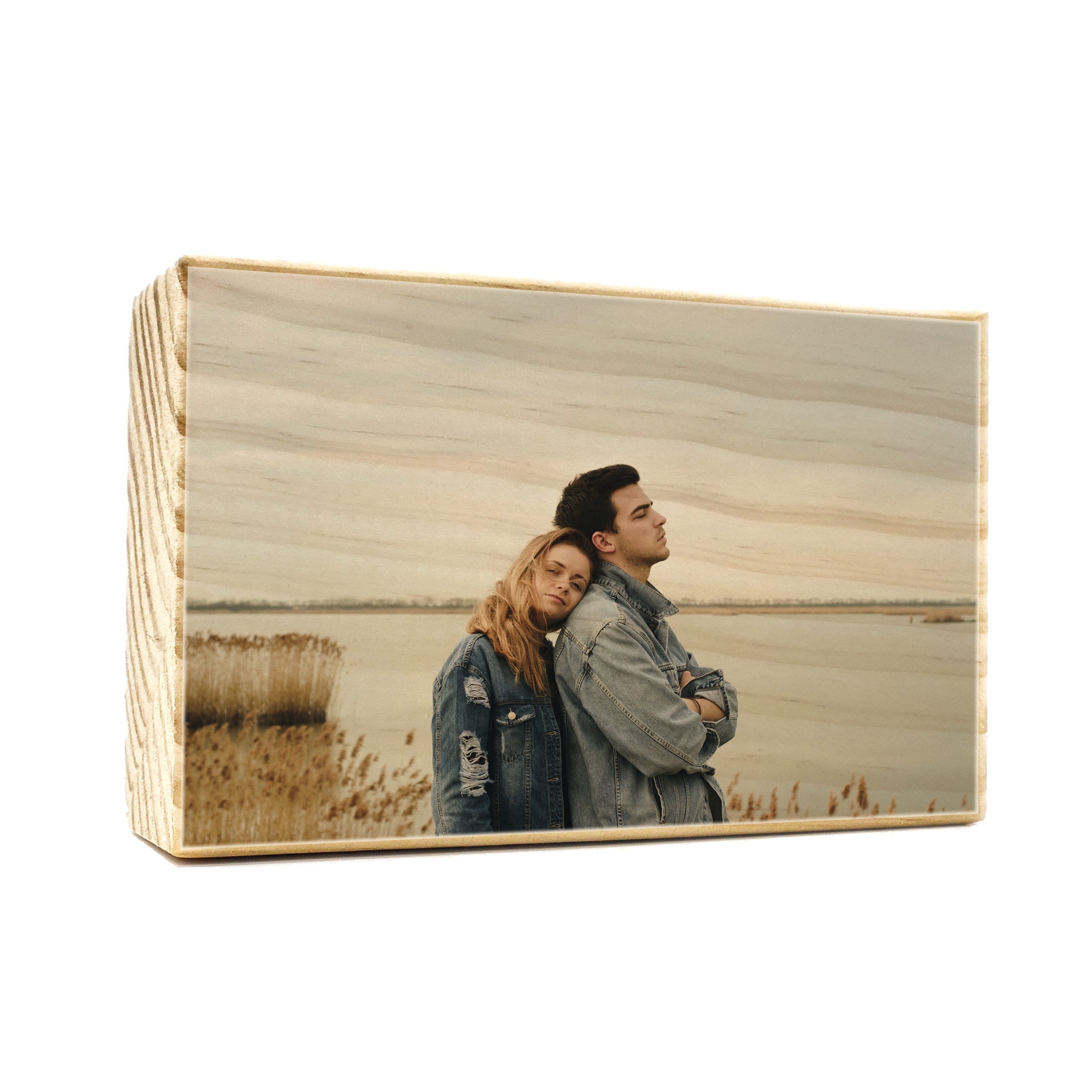 Taco de madera de pino personalizado a tu gusto. Sube tu foto o diseño, y nosotros nos encargamos de imprimir directamente sobre la madera mediante impresión UV de alta calidad. El resultado final es muy elegante.